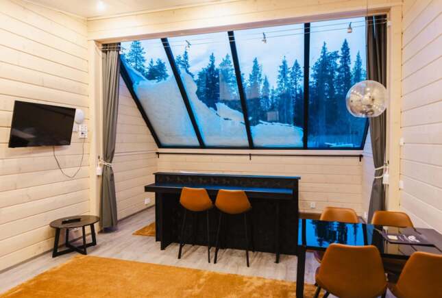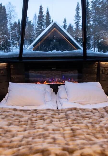 Some of our accommodations feature captivating glass roofs positioned directly above the bed—perfect for stargazing or catching a glimpse of the Aurora. Every cabin is designed to offer a cozy, immersive experience, allowing you to rest warmly while surrounded by the enchanting beauty of the northern sky.