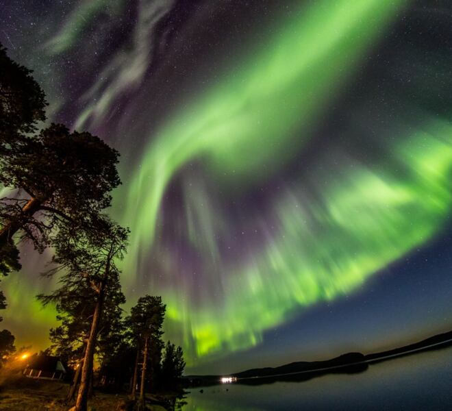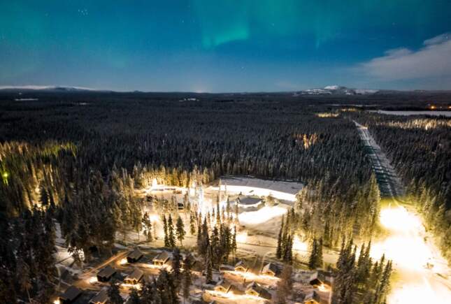 - An unforgettable evening, the roaring fire and the spectacular dance of the Northern Lights awaits you in the Aurora Camp, nearby a picturesque lake.