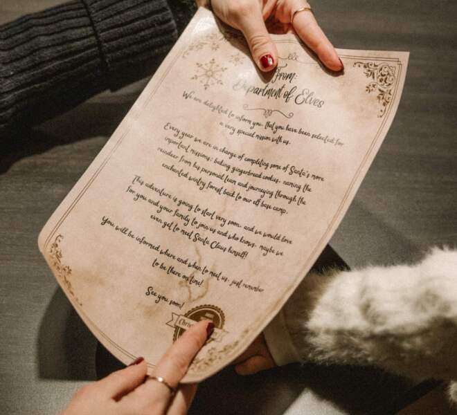 - 4. Please note that upon arrival, the reception team will hand over an invitation letter from the Elves, to join them in their quest to find Santa!