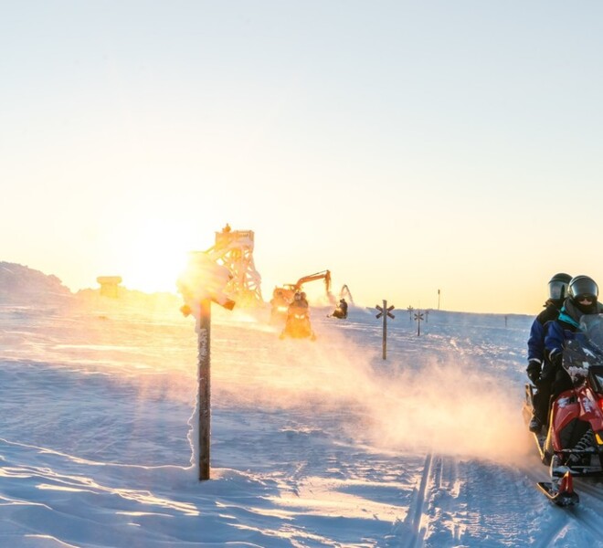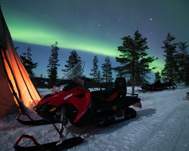 - Take a snowmobile through the nocturnal snow-covered forest, far away from the residential areas and their light pollution, up the slopes of the silent snowy fells.