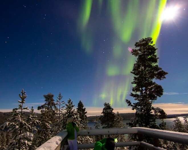 - Compose your photos to include the Northern Lights, the snow-covered conifers, and the fells or just let the unforgettable sights enchant you.