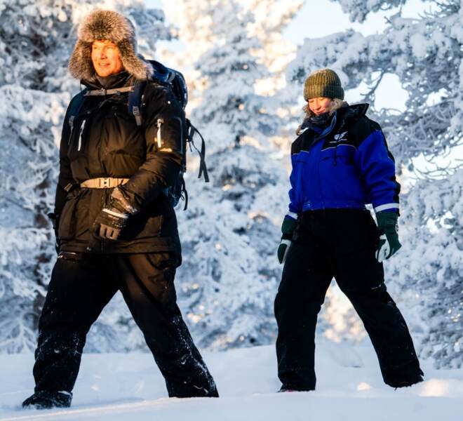 - We hike through the forest in snowshoes to a nearby fell where we will build a fire, prepare a hot drink and enjoy the spectacular scenery by a nearby wilderness lake. The guide will provide information on the nature and animals of Lapland, and with any luck, we may see a Siberian jay, a willow grouse, or a herd of reindeer wandering by.