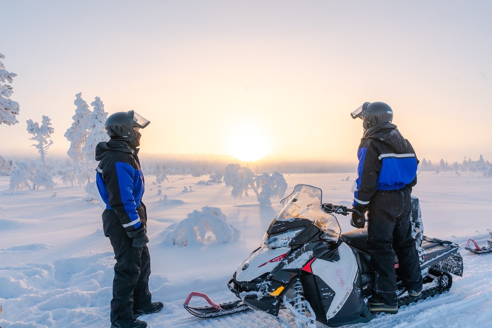 Explore Lapland’s winter wonderland on a snowmobile, riding around Soutaja Hill.