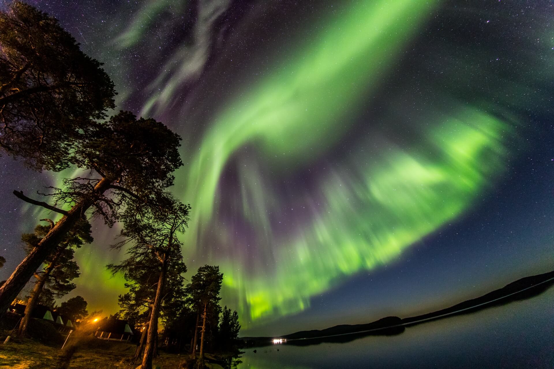 - An unforgettable evening, the roaring fire and the spectacular dance of the Northern Lights awaits you in the Aurora Camp, nearby a picturesque lake.